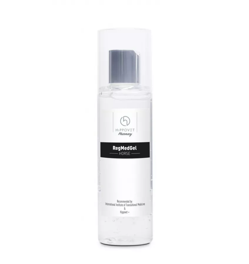 Regeneracyjny żel z mikropęcherzykami transbłonowymi izolowanymi z komórek macierzystych dla dużych zwierząt. Innowacyjny skład usprawnia procesy regeneracyjne skóry oraz przyspiesza proces zabliźniania.