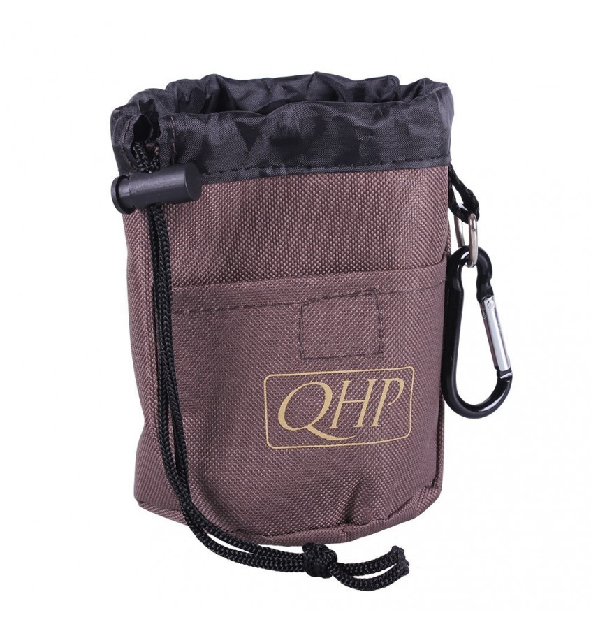 Woreczek na cukierki wykonany z solidnych materiałów. Można zamocować go do paska lub spodni. Posiada karabińczyk w kształcie litery D oraz ściągacze, aby zamknąć woreczek. Wyposażony w kiszonkę zewnętrzną zapinaną na mocny rzep. Idealnie sprawdzi się podczas zabawy z koniem z ziemi, aby mieć pod ręką smakołyki.