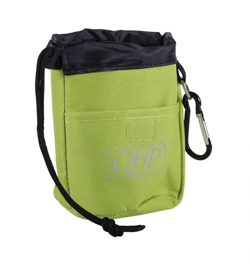 Woreczek na cukierki wykonany z solidnych materiałów. Można zamocować go do paska lub spodni. Posiada karabińczyk w kształcie litery D oraz ściągacze, aby zamknąć woreczek. Wyposażony w kiszonkę zewnętrzną zapinaną na mocny rzep. Idealnie sprawdzi się podczas zabawy z koniem z ziemi, aby mieć pod ręką smakołyki.