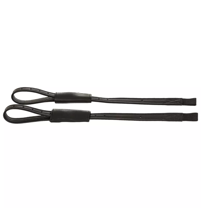 Puśliska Mono zapewniają bliższy kontakt z koniem. Zapewniają również mniejsze zużycie siodła niż podwójne puśliska. Łatwe mocowanie do siodła za pomocą pętli. Specyfikacje Materiał: skóra