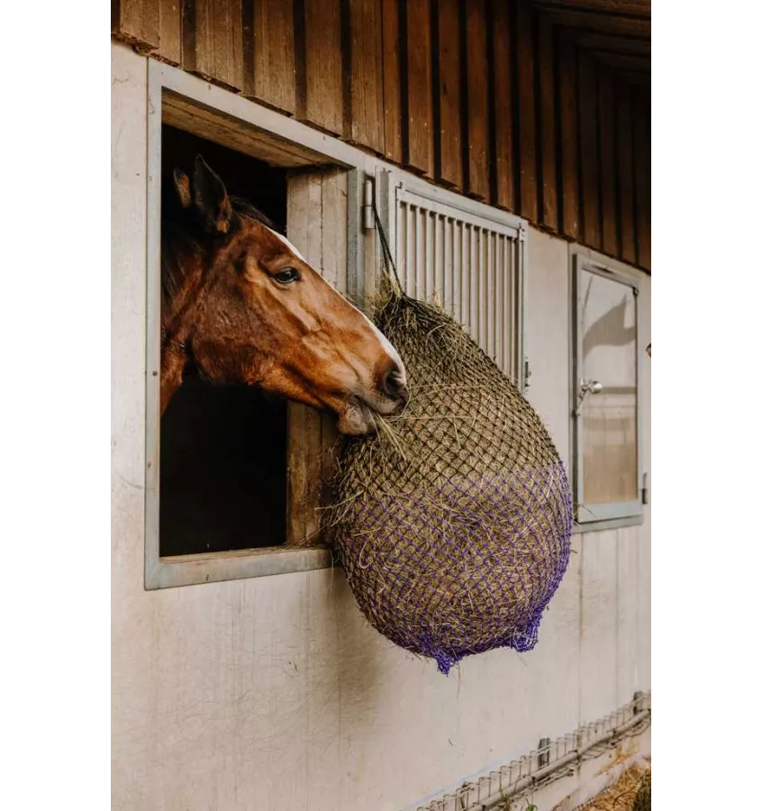 Duża dwukolorowa siatka na siano idealnie sprawdzi się u koni szybko jedzących. Wykonana z wysokiej jakości linki, odpornej na warunki atmosferyczne.