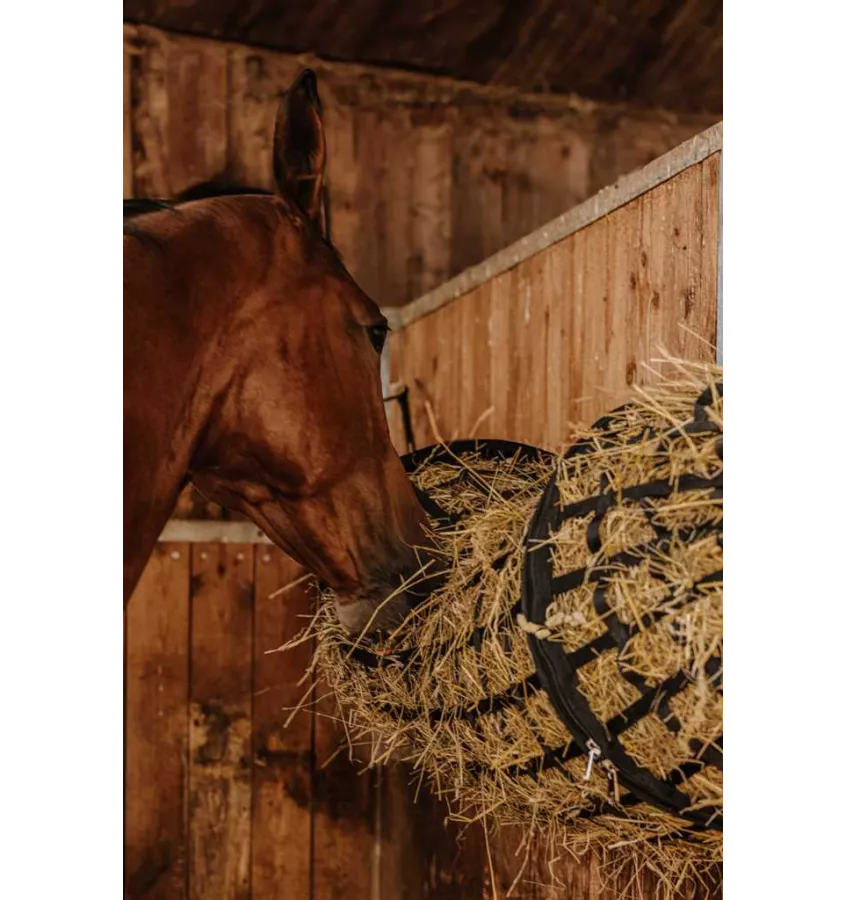 Siatka na siano dla konia. Tunelowa konstrukcja zapewnia maksymalną przestrzeń do przechowywania i łatwość użytkowania. Siatka o dużej pojemności, Zapięcie na zamek błyskawiczny ułatwia napełnianie siatki. Wykonana z wytrzymałego polipropylenu.