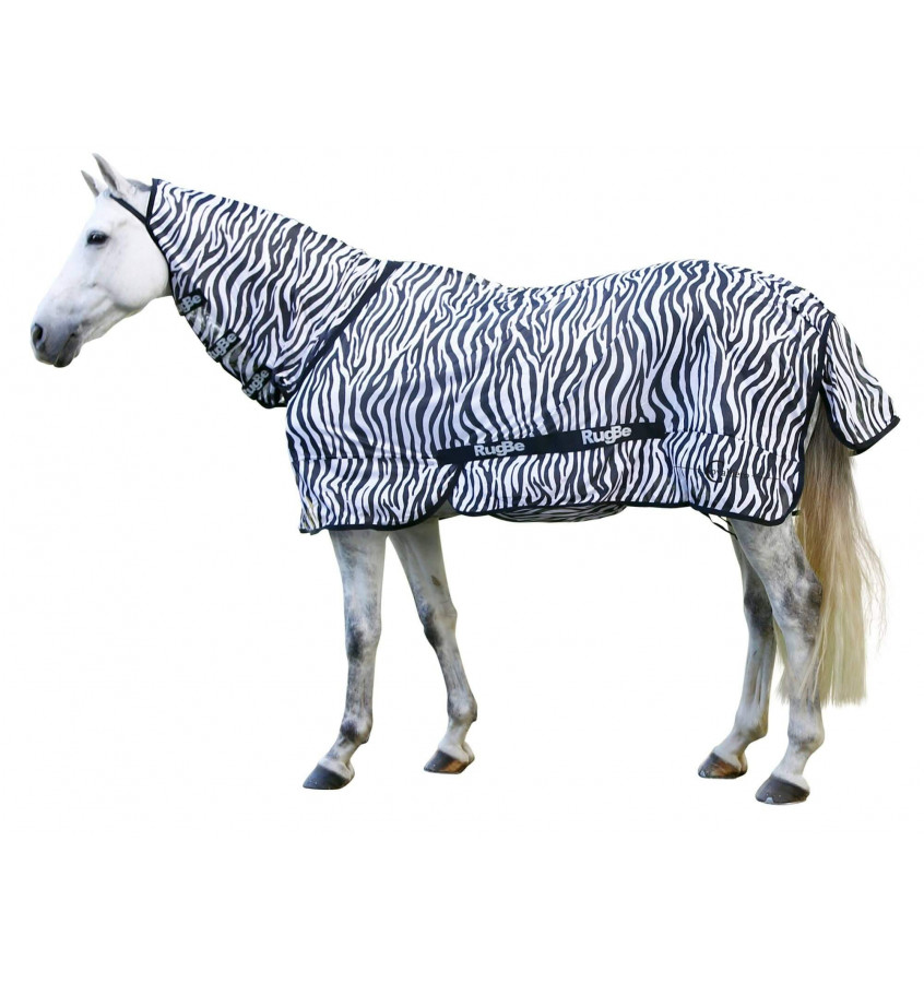 Derka chroniąca przed muchami, gzami i komarami z częścią szyjną. Część szyjna przypinana jest do derki za pomocą rzepa. Wykonana z gęsto tkanego, miękkiego poliestru. Derka nie ma rozcięcia, ale ma specjalną fałdkę która ułatwia chodzenie. Wyposażona w naczółek dzięki któremu kaptur się nie zsuwa. Posiada wyścielany obszar klatki piersiowej, elastyczne sznurki na nogi, dużą klapkę na ogon. Część brzuszna mocowana przy pomocy elastycznego pasa. Można prać w temp. 30 stopni.