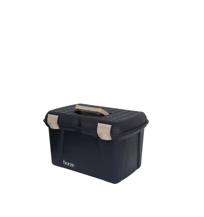 Skrzynka do czyszczenia Horze to wszechstronne i solidne rozwiązanie do przechowywania wszystkich produktów do pielęgnacji koni. Ta skrzynka jest wykonana z wytrzymałego plastiku i ma zamykane wieko z dwoma solidnymi zatrzaskami, które zapewniają bezpieczne przechowywanie. Pokrywa jest wyposażona w ergonomiczny uchwyt, który ułatwia transport. Wnętrze skrzynki oferuje dużo miejsca na różne przybory do pielęgnacji i jest podzielone wyjmowaną wkładką, która umożliwia dodatkową organizację. Kompaktowy rozmiar i lekka konstrukcja sprawiają, że skrzynka do czyszczenia Horze jest idealna do użycia w stajni lub w podróży.