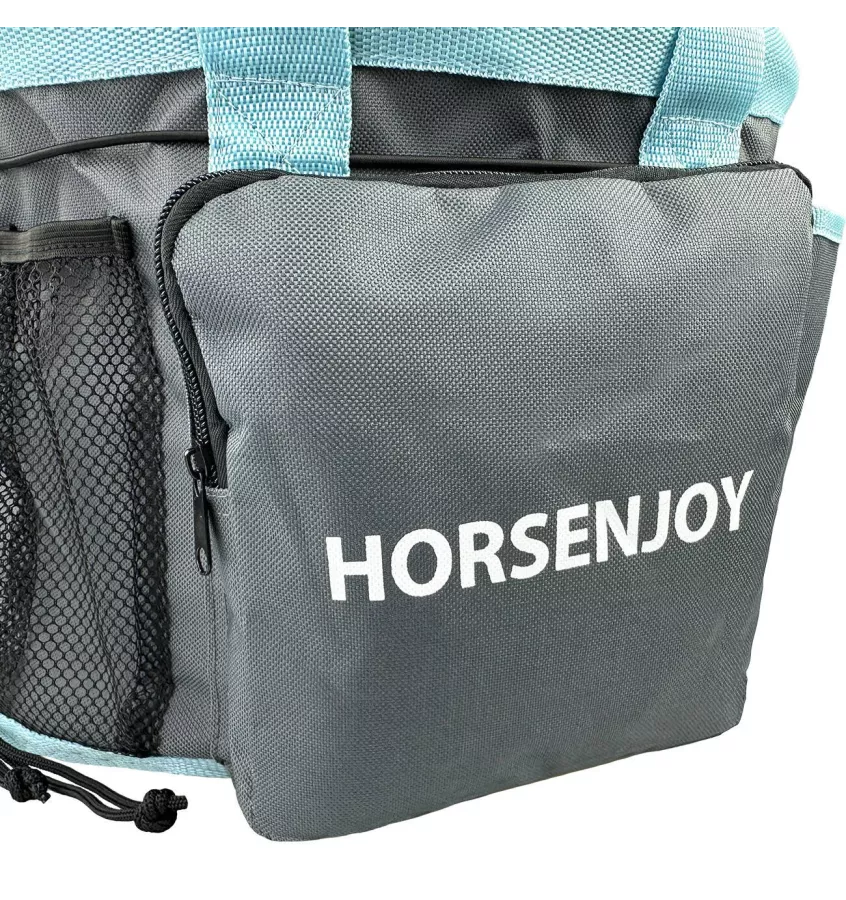 Torba na akcesoria jeździeckie i nie tylko. Można ją nosić na ramieniu lub w ręce. Jest bardzo pojemna i posiada liczne kieszonki, do których można schować najpotrzebniejsze drobiazgi.