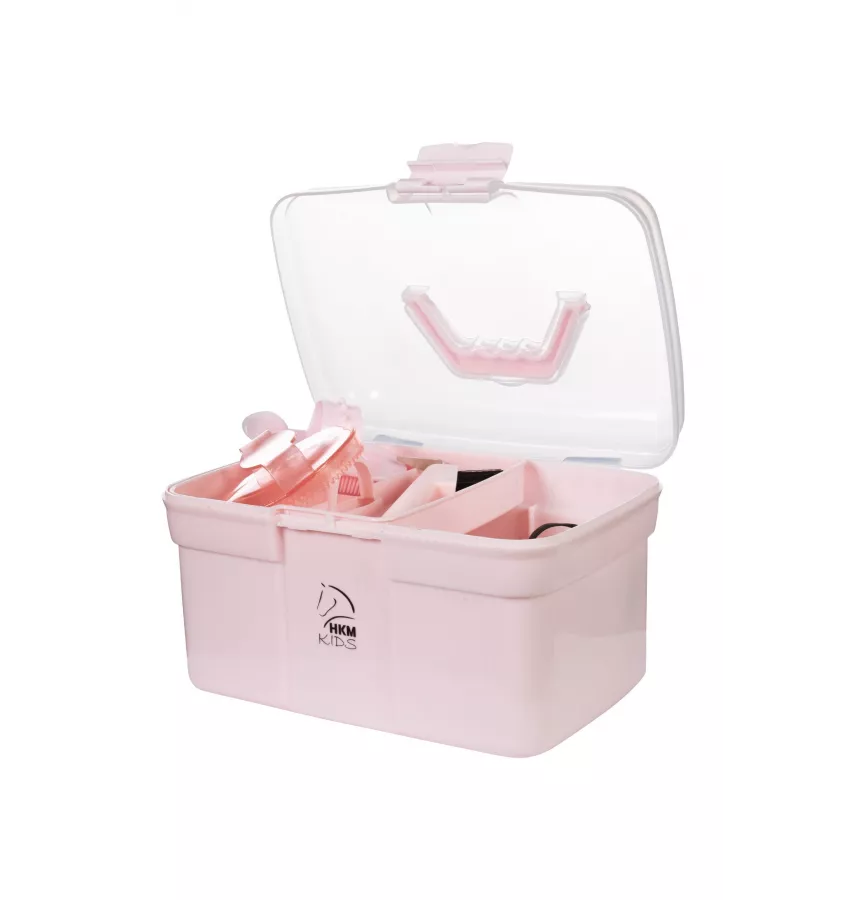 Skrzynka ze szczotkami dla najmłodszych. W zestawie z 7 akcesoriami do czyszczenia konia w małych rozmiarach.
