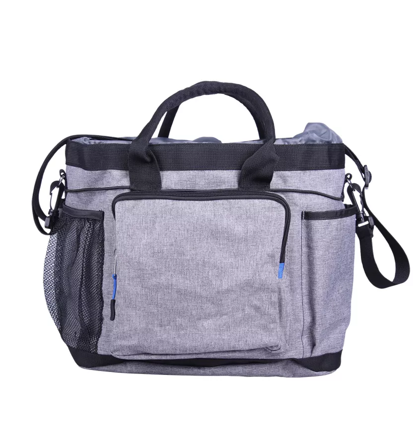 Torba na szczotki i preparaty do pielęgnacji konia. Odpinany pasek na ramię daje możliwość wyboru między noszeniem torby lub powieszeniem jej na ramieniu. Oprócz dużej komory ze ściągaczem torba ma wiele kieszeni do przechowywania na zewnątrz. Wewnątrz znajduje się kieszeń na zamek błyskawiczny z plastikową kieszenią na karty i dwoma szlufkami na długopisy. Zawiera kieszeń z siateczki do przechowywania butelki (obwód 30 cm). Posiada sznurek dookoła oraz plastikowe nóżki. Torba jest wodoodporna