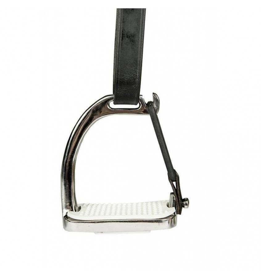 Strzemiona bezpieczne z gumką. Podczas upadku gumka wypina się i uwalnia nogę. Wykonane ze stali szlachetnej.