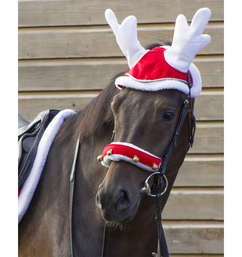 Zabawne nauszniki dla konia w kształcie rogów renifera. Idealnie pasują do całej kolekcji świątecznej.