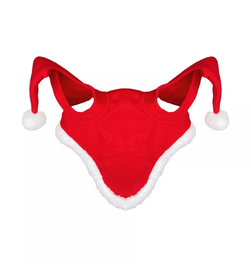 Miękkie nauszniki – czapeczki z pomponami. Można nakładać na całe końskie uszy lub pozostawić swobodne. Idealne do sesji zdjęciowej lub na treningi w okresie świątecznym.