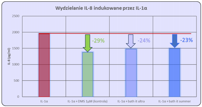 Szampony bath it hamują uwalnianie IL-8 indukowane przez IL-1α, co potwierdza ich skuteczne działanie przeciwzapalne i łagodzące.