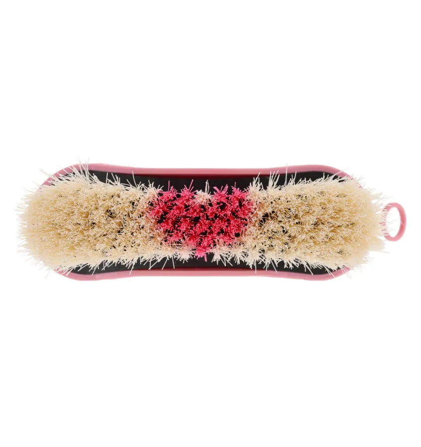 Miękka szczotka do głowy z kolekcji Lyvia. Posiada wygodną rączkę z nadrukiem w kształcie serca i różowe włosie w kształcie serca.