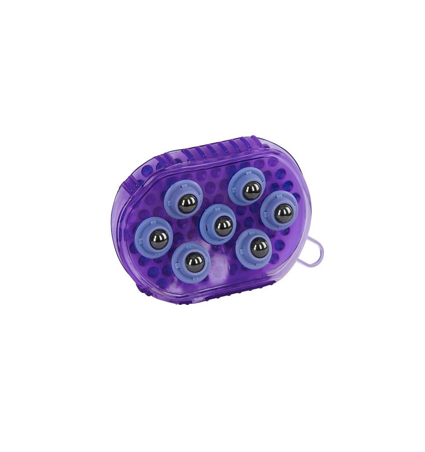 Szczotka do masażu wykonana z miękkiego, sztucznego tworzywa. Wyposażona z jednej strony w 7 magnetycznych kulek, z drugiej strony w gumowe wypustki.