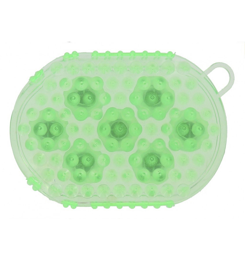 Szczotka do masażu wykonana z miękkiego, sztucznego tworzywa. Wyposażona z jednej strony w 7 magnetycznych kulek, z drugiej strony w gumowe wypustki.