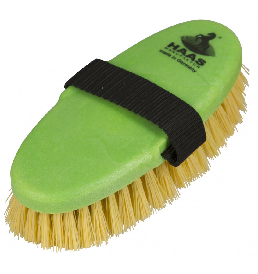 Szczotka z szorstkim syntetycznym włosiem z kolorowej imitacji korzenia ryżowego.