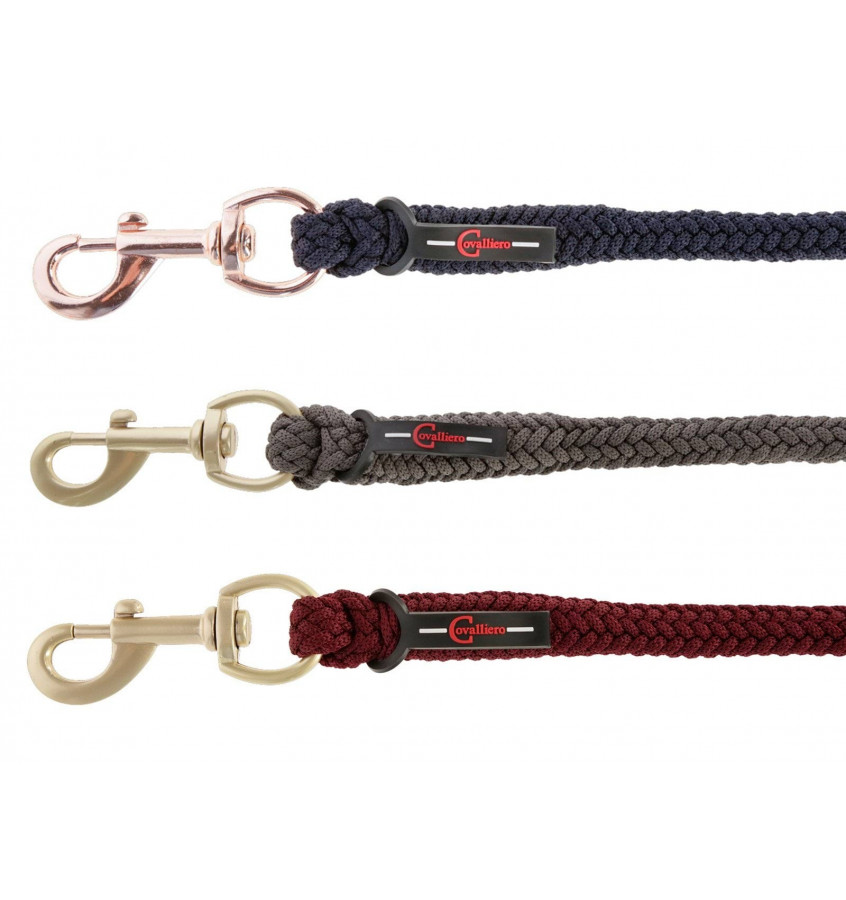 Uwiąz dla konia wykonany z miękkiego i przyjemnego w dotyku materiału. Mocny i wytrzymały o długości 2m. Karabińczyk rosegold lub złoty (w zależności od koloru uwiązu).