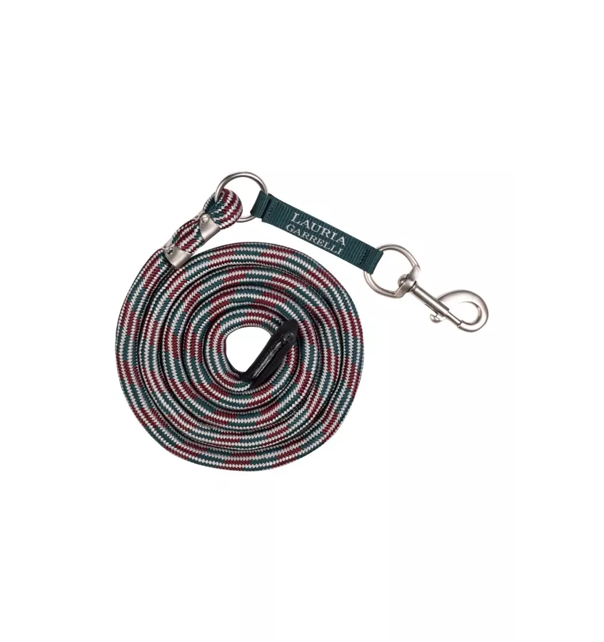Uwiąz dla konia wykonany z mocnej liny. Wstawka z taśmy z napisem Lauria Garrelli. Długość 180cm