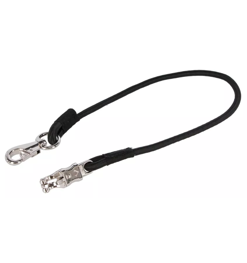 Elastyczny uwiąz z obrotowym karabińczykiem i karabińczykiem bezpiecznym. Idealnie nada się do transportu czy w stajni. Siła zrywająca około 350kg.