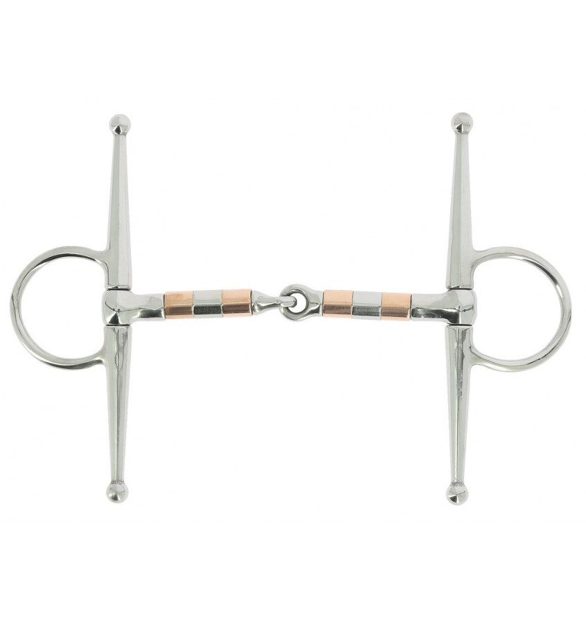 Wędzidło pełne wykonane ze stali nierdzewnej pojedynczo łamane. Wąsy zapobiegają przesuwaniu się wędzidła na boki. Miedziane rolki obracają się i zmniejszają prawdopodobieństwo złapania wędzidła przez konia. Grubość 13mm. Długość wąsów 180mm.