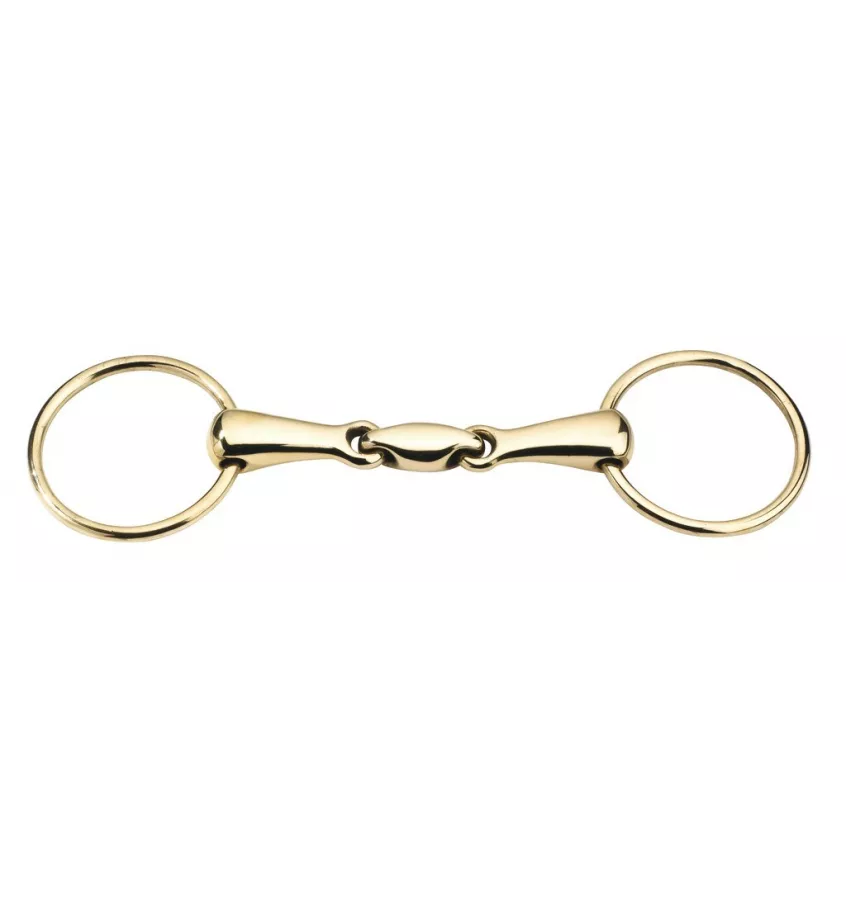Wędzidło podwójnie łamane anatomic Cyprium. Wykonane z materiału Cyprium, które zawiera miedź. Jej zadaniem jest wspomaganie pienienia i żucia. Wędzidło puste w środku, lekkie.