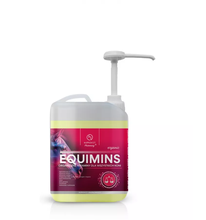 Equimins dzięki zawartym beta-glukanom, pozytywnie wpływa na układ immunologiczny, poprawiając odporność konia. Kompleks wyselekcjonowanych ziół wzmacnia organizm, zwiększa witalność oraz działa kojąco na nabłonek układu pokarmowego. Zastosowanie kwasu hialuronowego jako nośnika kompleksów witaminowych zwiększa ich stabilność oraz biodostępność w środowisku żołądka.