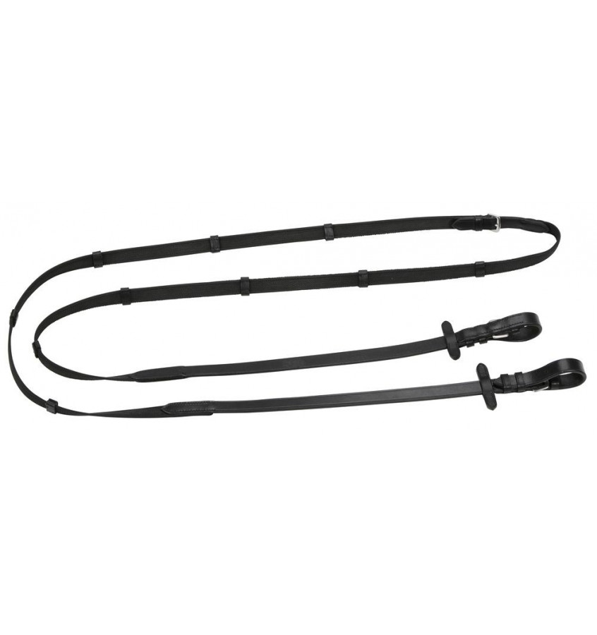 Wodze gumowane z wykończeniami z miękkiej skóry. Posiadają stopery. Długość około 3m, szerokość 20mm