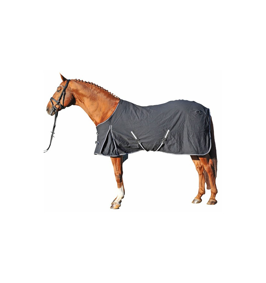 Derka przejściowa wykonana z materiału oddychającego. Posiada regulację z przodu, podszycie na kłębie, rozcięcie na łapotki, pasy krzyżowe pod brzuchem, wiązanie pod ogonem. Wykonana z materiału prostego w pielęgnacji.