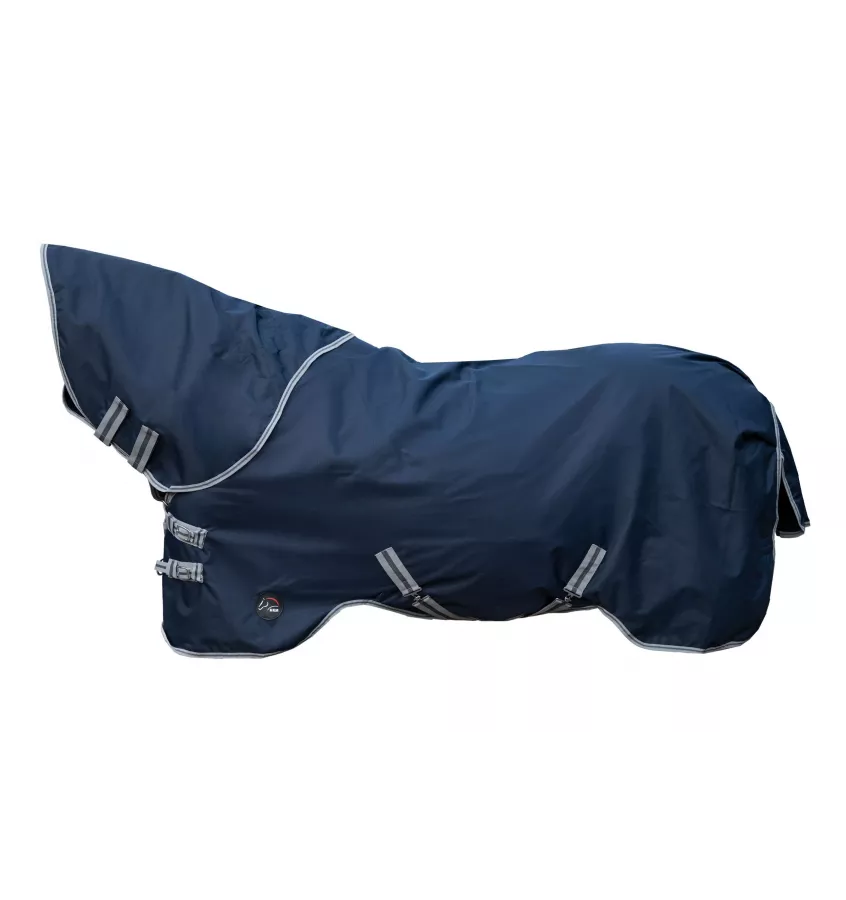 Derka dla konia wykonana z zaawansowanego technologicznie materiału Breathe-Comfort, którego przepuszczalność powietrza wynosi 3.000 ml na m²/24 godz. Materiał oddychający i miękki w dotyku. Nie przepuszcza wody (słup wody: 3.000 mm). Od wewnątrz podszyta funkcyjnym materiałem, który odprowadza wilgoć na zewnątrz. Może być używana cały rok jako ochrona przed deszczem. Kaptur odpinany. Wypełnienie 0g
