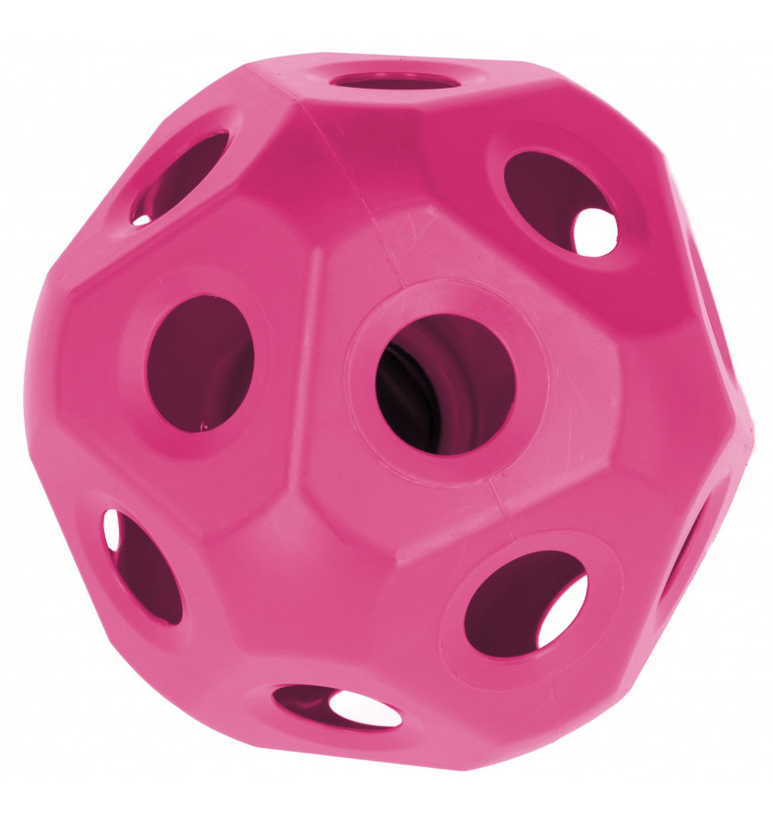 Specjalna piłka dla konia wykonana z tworzywa sztucznego odpornego na na promienie UV. Pomieści w sobie do 3 kg siana. Wyposażona w 19 otworów po 70mm. Piłka pomaga spowolnić pobieraniu pokarmu oraz pokonać nudę na pastwisku lub boksie. Średnica piłki wynosi 40cm, a otwór do napełniania 116mm, który jest zabezpieczony zakrętką.